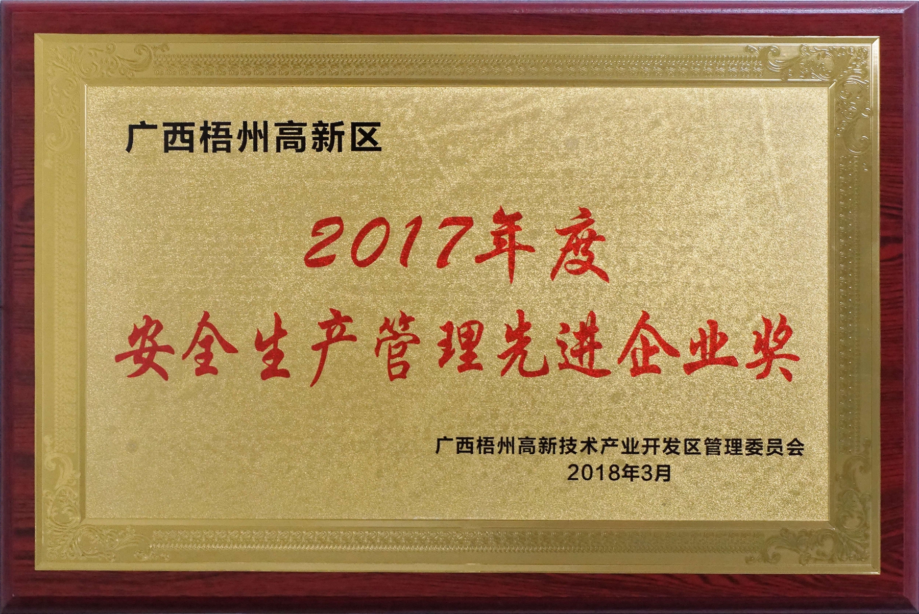 榮獲2017年安全生產(chǎn)管理先進企業(yè)獎