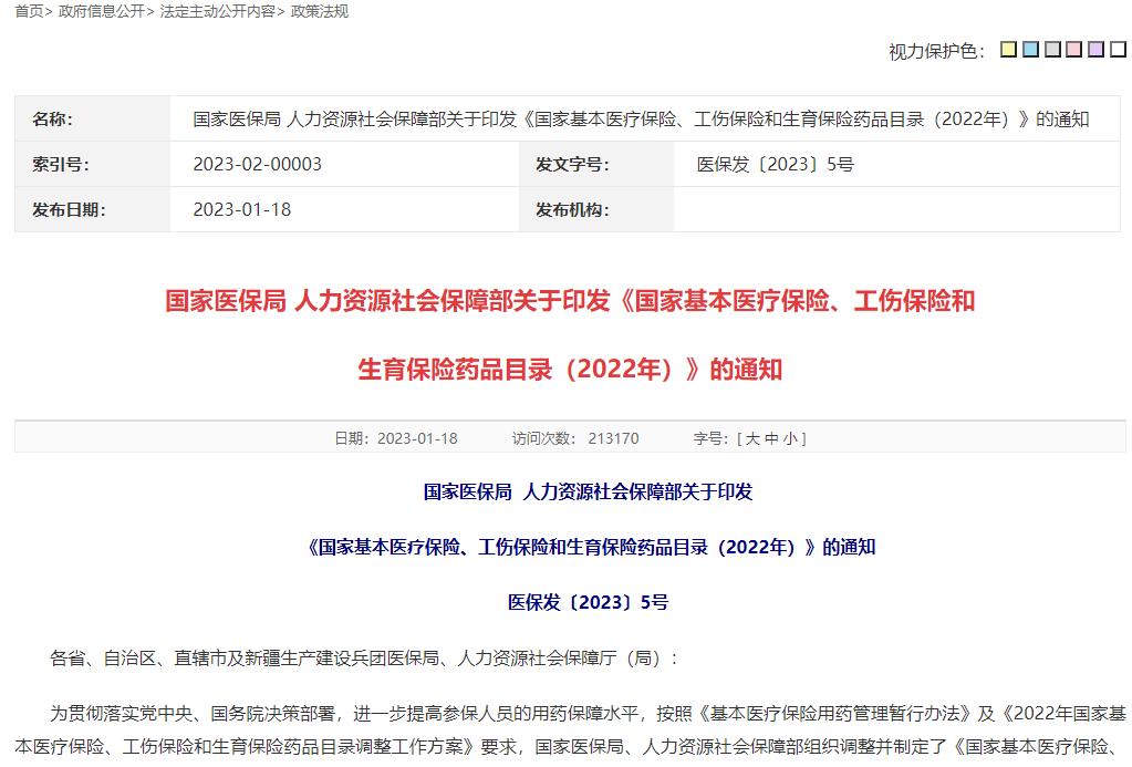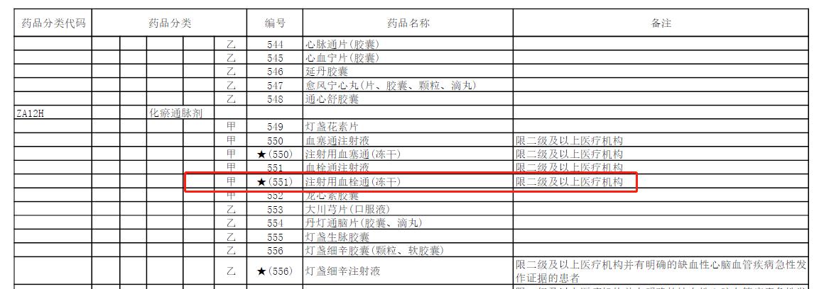 2023年1月18日,國(guó)家醫(yī)療保障局正式對(duì)外公布2022年《國(guó)家基本醫(yī)療保險(xiǎn)、工傷保險(xiǎn)和生育保險(xiǎn)藥品目錄》,其中梧州制藥公司獨(dú)家生產(chǎn)的國(guó)家基藥——注射用血栓通(凍干)由2021年“限二級(jí)及以上醫(yī)療機(jī)構(gòu)的中風(fēng)偏癱或視網(wǎng)膜靜脈阻塞患者”調(diào)整為:“限二級(jí)及以上醫(yī)療機(jī)構(gòu)”。并于2023年3月1日起正式執(zhí)行。