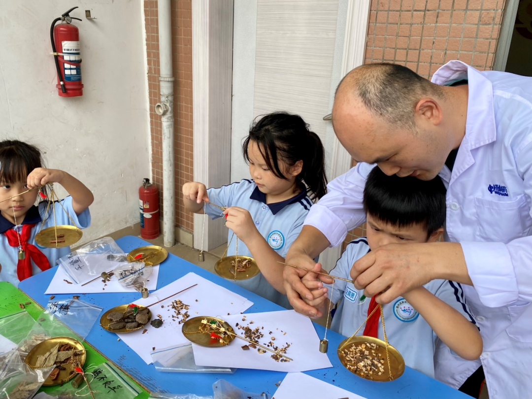 “原來中藥這么有趣!”在中藥辨識(shí)區(qū),孩子們圍著展臺(tái)興奮不已,通過觸摸、嗅聞藥材,辨識(shí)藥材的質(zhì)地與氣味,互動(dòng)式的教學(xué)方式讓傳統(tǒng)中藥知識(shí)變得生動(dòng)有趣?!袄蠋?,這個(gè)銅秤好精致!”戥秤體驗(yàn)臺(tái)前更是熱鬧非凡,一桿桿古樸的戥秤吸引了孩子們的目光,專業(yè)藥師正手把手地教孩子們“一錢一兩”的精準(zhǔn)稱量,孩子們?nèi)褙炞⒌夭僮?,感受著中醫(yī)藥文化的嚴(yán)謹(jǐn)與精妙。