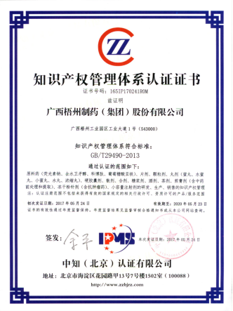 梧州制藥作為制藥企業(yè)將知識產權放在企業(yè)管理的戰(zhàn)略高度,在2017年4月通過了知識產權管理體系認證。通過貫徹《企業(yè)知識產權管理規(guī)范》GB/T 29490-2013,公司整合規(guī)范,構建了科學合理的知識產權管理體系,形成了一套系統(tǒng)適合自身的完整知識產權管理制度、體系、程序和管理方法。